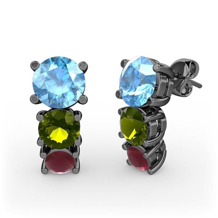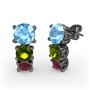 Akuamarin, peridot ve kök yakut 925 ayar siyah rodyum kaplama gümüş küpe