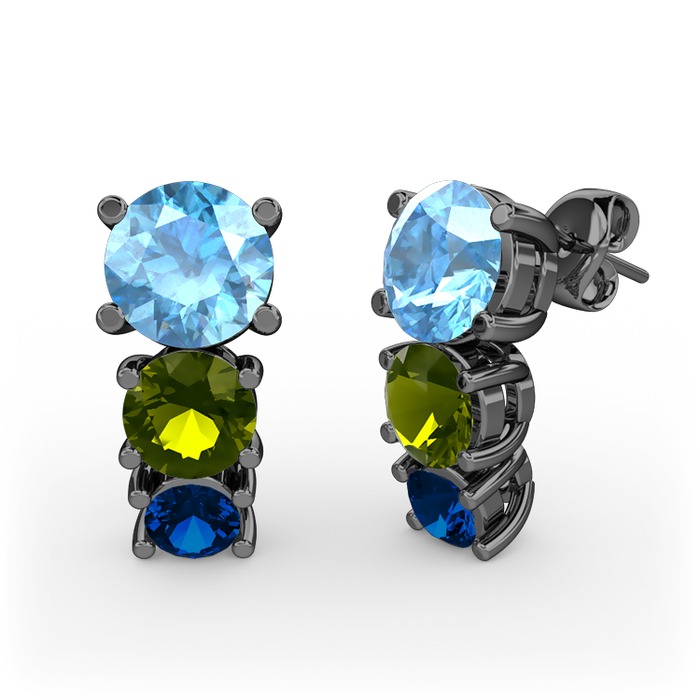 Akuamarin, peridot ve lab safir 925 ayar siyah rodyum kaplama gümüş küpe