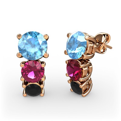 Akuamarin, rodolit garnet ve siyah zirkon 18 ayar rose altın küpe