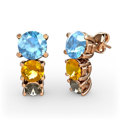 Akuamarin, sitrin ve dumanlı kuvars 8 ayar rose altın küpe