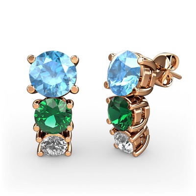 Akuamarin, yeşil kuvars ve pırlanta 8 ayar rose altın küpe (0.22 karat)