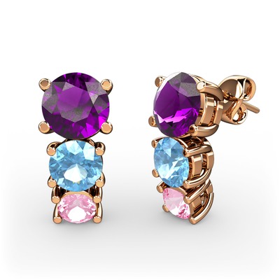 Ametist, akuamarin ve pembe kuvars 8 ayar rose altın küpe