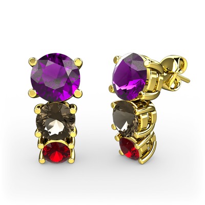 Ametist, dumanlı kuvars ve garnet 14 ayar altın küpe