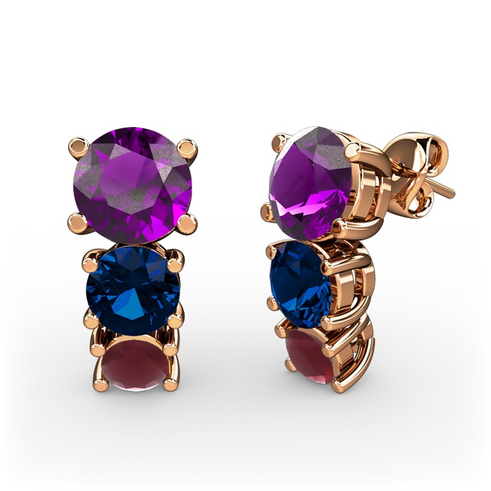 Ametist, lab safir ve kök yakut 18 ayar rose altın küpe