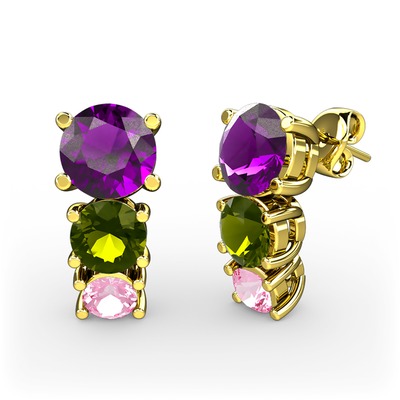 Ametist, peridot ve pembe kuvars 14 ayar altın küpe