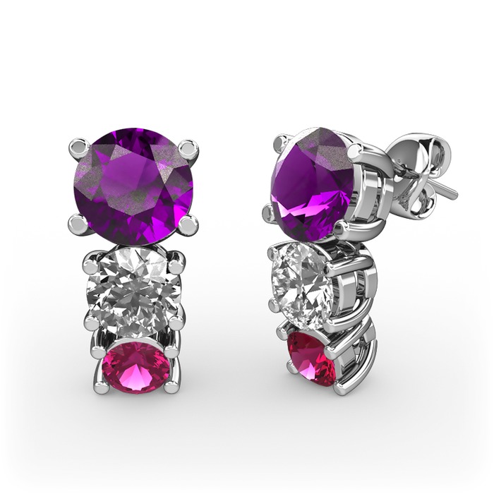 Ametist, pırlanta ve rodolit garnet 14 ayar beyaz altın küpe (0.48 karat)