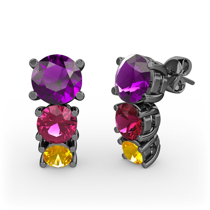 Ametist, rodolit garnet ve sitrin 925 ayar siyah rodyum kaplama gümüş küpe