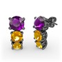Ametist ve sitrin 925 ayar siyah rodyum kaplama gümüş küpe