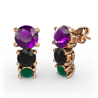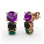 Ametist, siyah zirkon ve kök zümrüt 8 ayar rose altın küpe