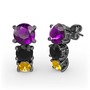 Ametist, siyah zirkon ve sitrin 925 ayar siyah rodyum kaplama gümüş küpe