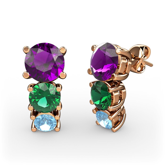 Ametist, yeşil kuvars ve akuamarin 18 ayar rose altın küpe
