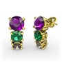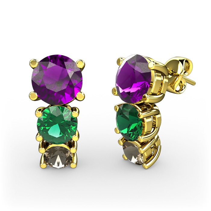Ametist, yeşil kuvars ve dumanlı kuvars 18 ayar altın küpe