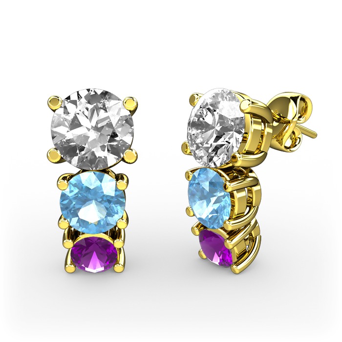 Beyaz zirkon, akuamarin ve ametist 8 ayar altın küpe