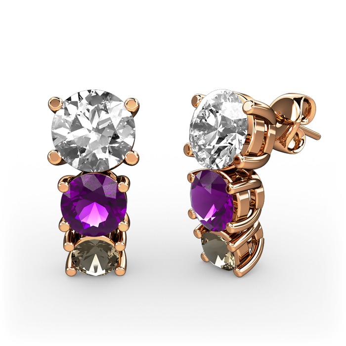 Beyaz zirkon, ametist ve dumanlı kuvars 18 ayar rose altın küpe