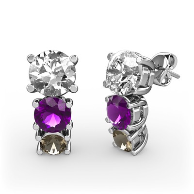 Beyaz zirkon, ametist ve dumanlı kuvars 925 ayar gümüş küpe