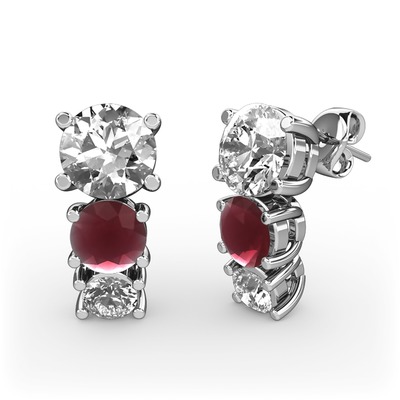 Beyaz zirkon, kök yakut ve swarovski 14 ayar beyaz altın küpe