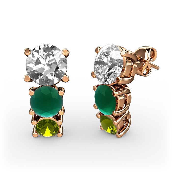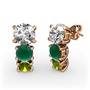 Beyaz zirkon, kök zümrüt ve peridot 14 ayar rose altın küpe