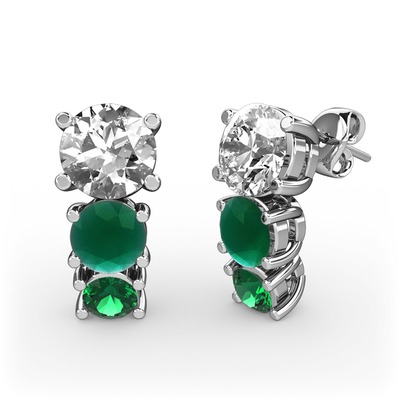 Beyaz zirkon, kök zümrüt ve yeşil kuvars 925 ayar gümüş küpe