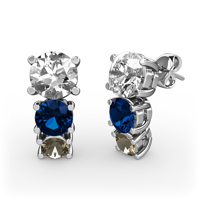 Beyaz zirkon, lab safir ve dumanlı kuvars 925 ayar gümüş küpe