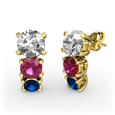 Beyaz zirkon, rodolit garnet ve lab safir 18 ayar altın küpe