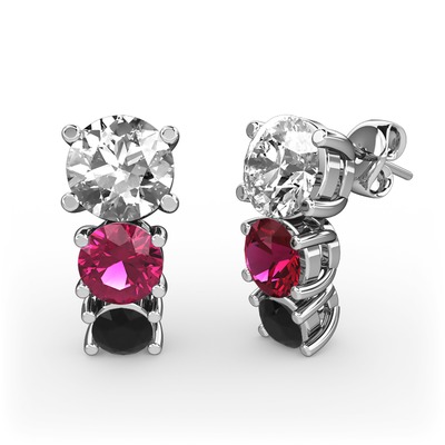 Beyaz zirkon, rodolit garnet ve siyah zirkon 14 ayar beyaz altın küpe