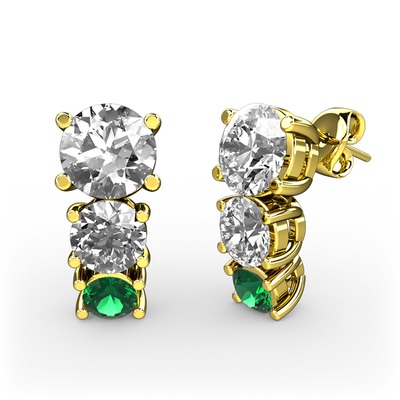Beyaz zirkon, swarovski ve yeşil kuvars 8 ayar altın küpe