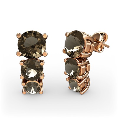 Dumanlı kuvars 8 ayar rose altın küpe