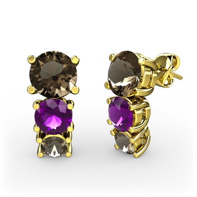 Dumanlı kuvars ve ametist 925 ayar altın kaplama gümüş küpe
