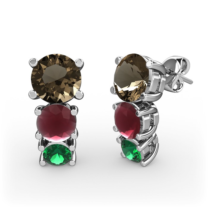Dumanlı kuvars, kök yakut ve yeşil kuvars 925 ayar gümüş küpe