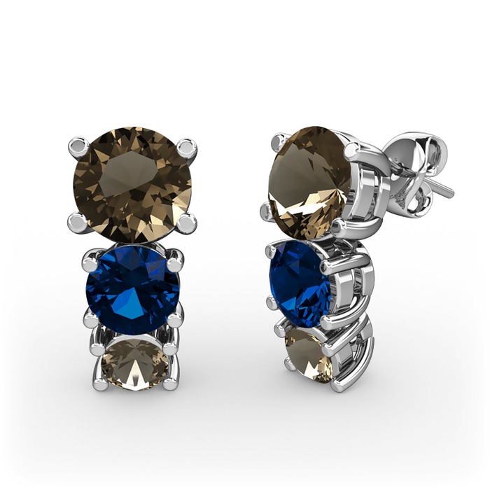 Dumanlı kuvars ve lab safir 925 ayar gümüş küpe