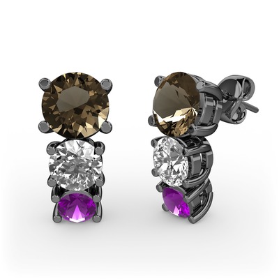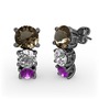 Dumanlı kuvars, pırlanta ve ametist 925 ayar siyah rodyum kaplama gümüş küpe (0.48 karat)