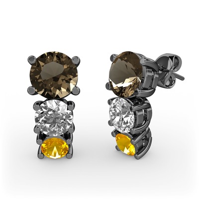 Dumanlı kuvars, pırlanta ve sitrin 925 ayar siyah rodyum kaplama gümüş küpe (0.48 karat)