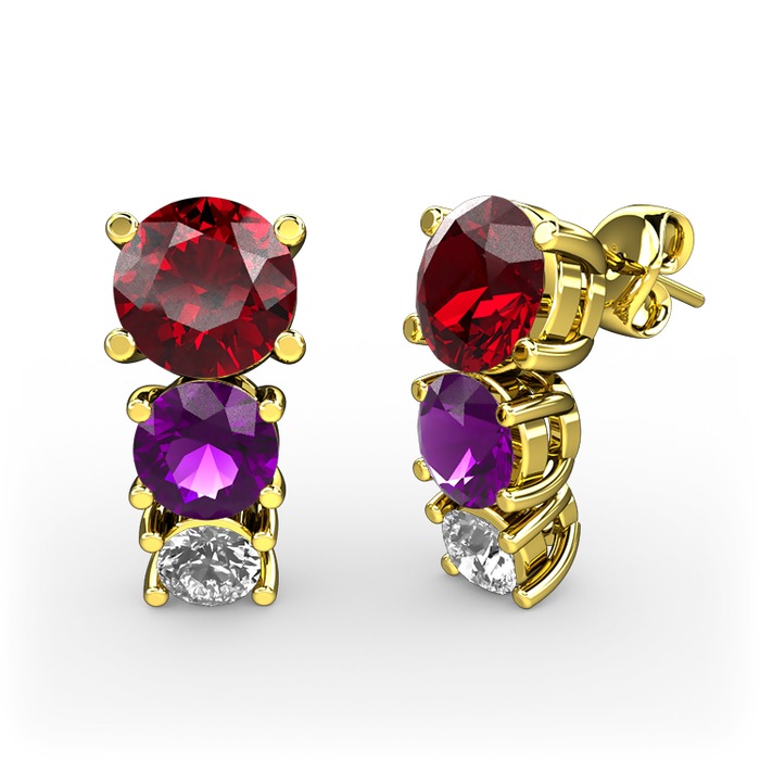 Garnet, ametist ve beyaz zirkon 8 ayar altın küpe