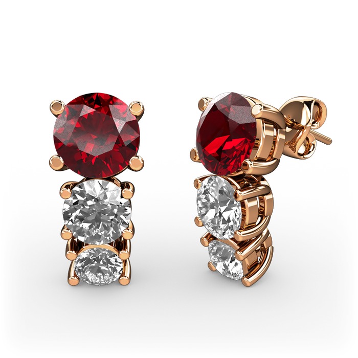 Garnet, beyaz zirkon ve pırlanta 14 ayar rose altın küpe (0.22 karat)