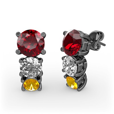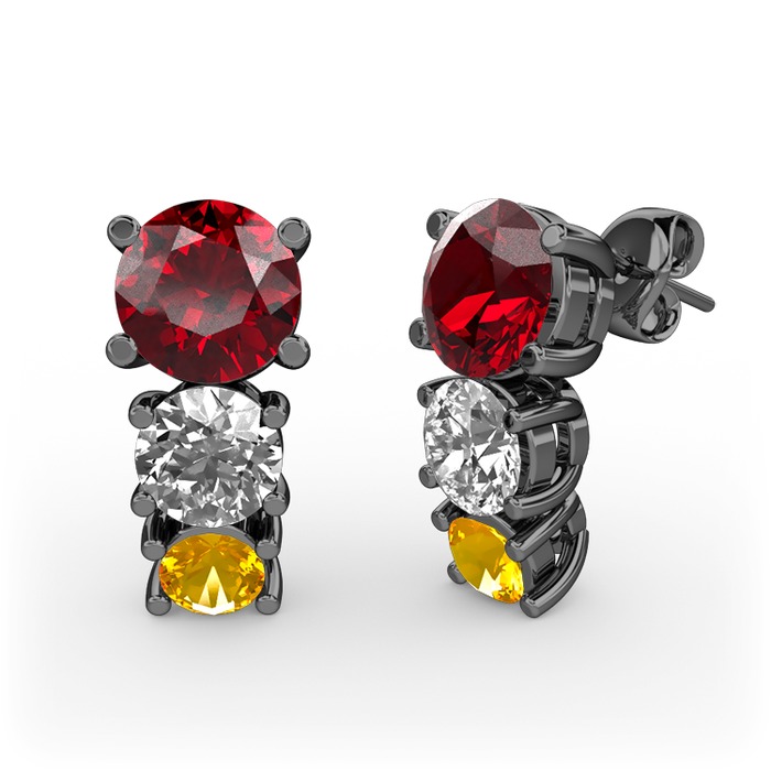 Garnet, beyaz zirkon ve sitrin 925 ayar siyah rodyum kaplama gümüş küpe