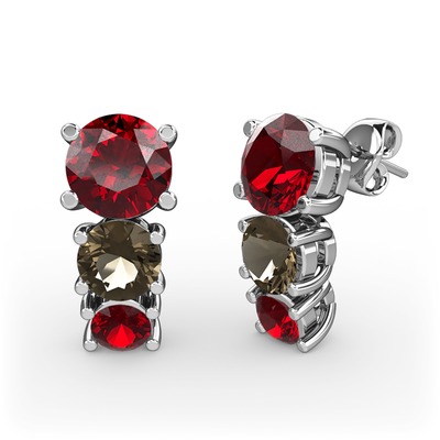 Garnet ve dumanlı kuvars 8 ayar beyaz altın küpe