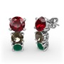 Garnet, dumanlı kuvars ve kök zümrüt 8 ayar beyaz altın küpe