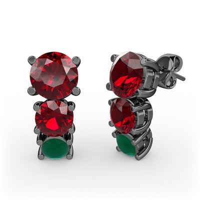 Garnet ve kök zümrüt 925 ayar siyah rodyum kaplama gümüş küpe