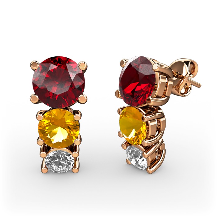 Garnet, sitrin ve beyaz zirkon 14 ayar rose altın küpe