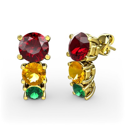 Garnet, sitrin ve yeşil kuvars 925 ayar altın kaplama gümüş küpe