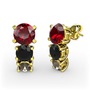 Garnet, siyah zirkon ve dumanlı kuvars 14 ayar altın küpe