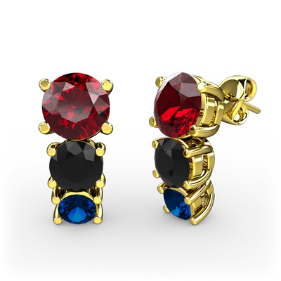 Garnet, siyah zirkon ve lab safir 14 ayar altın küpe