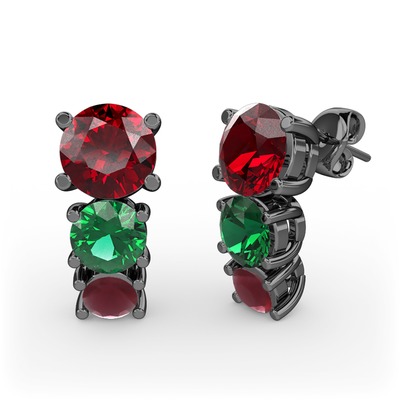 Garnet, yeşil kuvars ve kök yakut 925 ayar siyah rodyum kaplama gümüş küpe