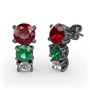 Garnet, yeşil kuvars ve pırlanta 925 ayar siyah rodyum kaplama gümüş küpe (0.22 karat)