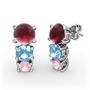 Kök yakut, akuamarin ve pembe kuvars 14 ayar beyaz altın küpe