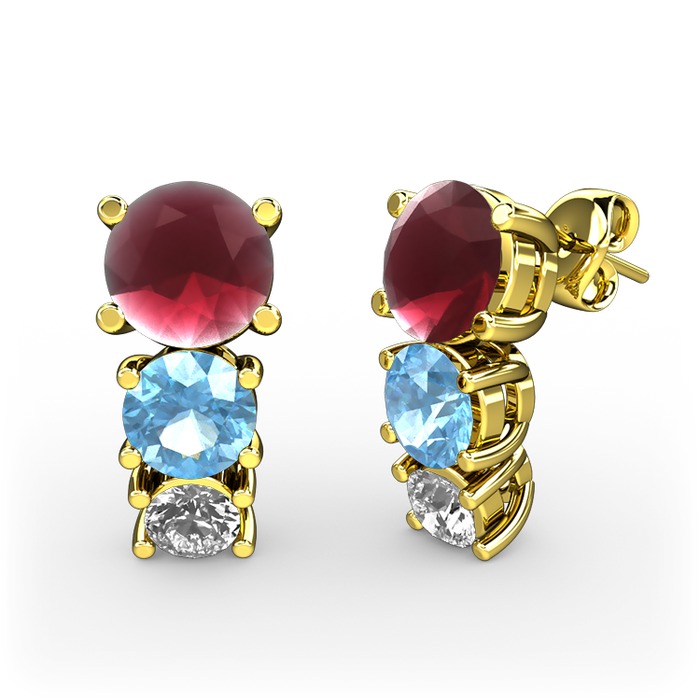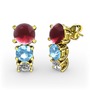 Kök yakut, akuamarin ve pırlanta 18 ayar altın küpe (0.22 karat)