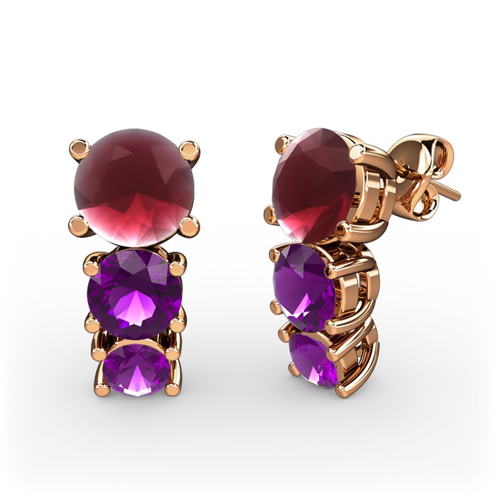 Kök yakut ve ametist 8 ayar rose altın küpe
