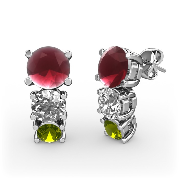 Kök yakut, beyaz zirkon ve peridot 18 ayar beyaz altın küpe