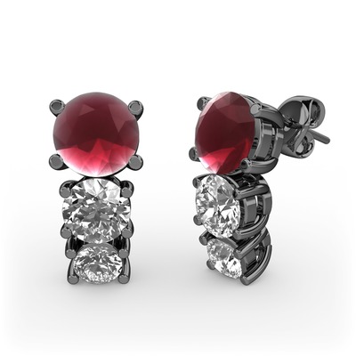 Kök yakut, beyaz zirkon ve swarovski 925 ayar siyah rodyum kaplama gümüş küpe