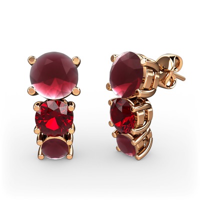Kök yakut ve garnet 14 ayar rose altın küpe